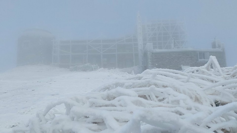 В Карпатах на горе Поп Иван Черногорский выпал снег во вторник, 10 октября, на фоне морозной "минусовой" температуры воздуха, а также фиксируется ухудшение видимости из-за тумана.